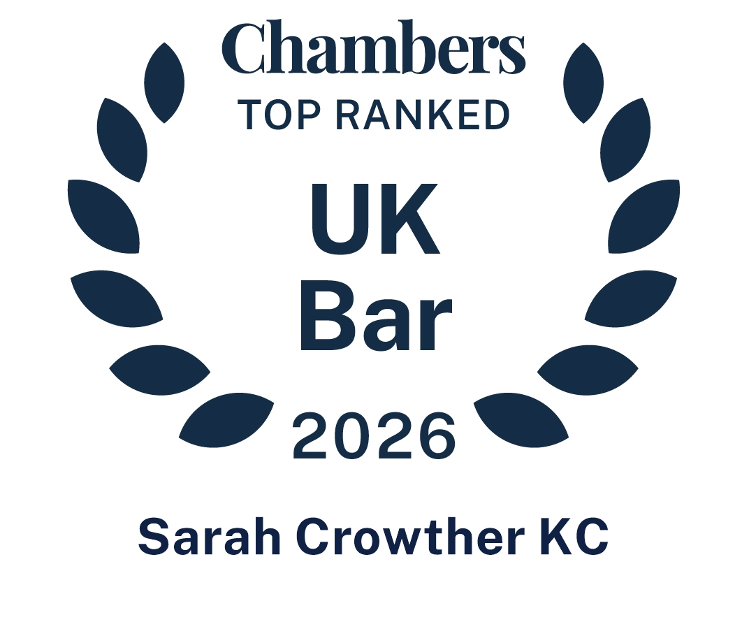 Sarah Crowther KC is regulated by the Bar Standards Board (BSB) and holds a current practising certificate. If you are not satisfied with the service provided, please click here.