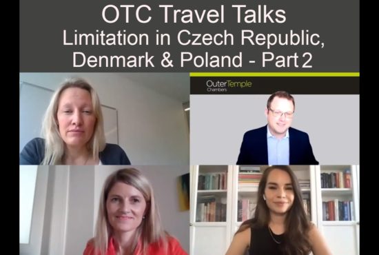 Watch Ian Denham, Klára Dvořáková, Kira Kolby Christensen and Gabriela Lenarczyk in the sixth episode of our travel law discussions; ‘OTC Travel Talks’. This episode focuses on the limitation periods in Czech Republic, Denmark & Poland for personal injury claims. Outer Temple’s Ian Denham was joined by Klára Dvořáková (Partner at Holubová, Prague, Czech Republic), Kira Kolby Christensen (Partner at Elmer Advokater, Copenhagen, Denmark) and Gabriela Lenarczyk (Associate at Budzowska Fiutowski & Partners, Krakow, Poland). Watch OTC Travel Talks Episode 6 In the second part of this discussion Ian and his guests discuss extension of limitation periods and consider: Whether the limitation period be extended by agreement between the parties or by Court order. Whether there is a limit as to how…