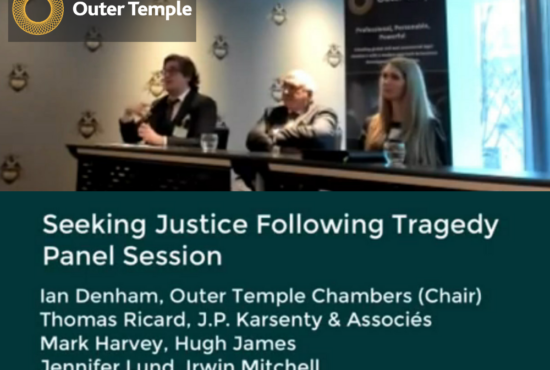Ian Denham hosted a panel session on seeking justice following tragedy at Outer Temple’s Travel Law Conference in Manchester with guests Thomas Ricard, Mark Harvey and Jennifer Lund. The recording is now available. Outer Temple Chambers hosted a Travel Law Conference in Manchester on 17th March 2022 together with a selection of esteemed guests from the travel law industry. This was a hybrid event and the recordings are now available online. The last session of the day was “Seeking Justice Following Tragedy”. Chaired by Head of the Travel Law Team, Ian Denham, panel members were: Thomas Ricard (J.P. Karsenty & Associés) Mark Harvey (Hugh James) Jennifer Lund (Irwin Mitchell) Watch the discussion; Seeking Justice Following Tragedy About the presenters Ian Denham,…