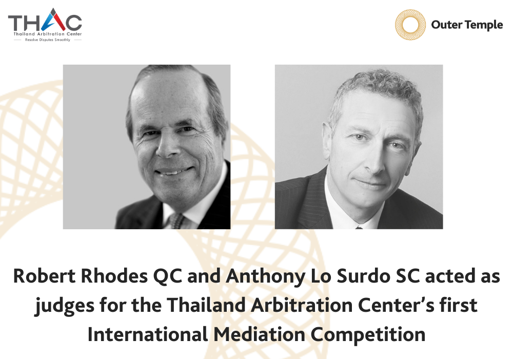 We are proud to share that highly experienced Outer Temple barrister, Robert Rhodes QC, and our Professional Associate Anthony Lo Surdo SC, were asked to be judges for this event. He says that he “accepted the THAC’s invitation to be a judge because it is very important to encourage and develop the next generation of mediators”.